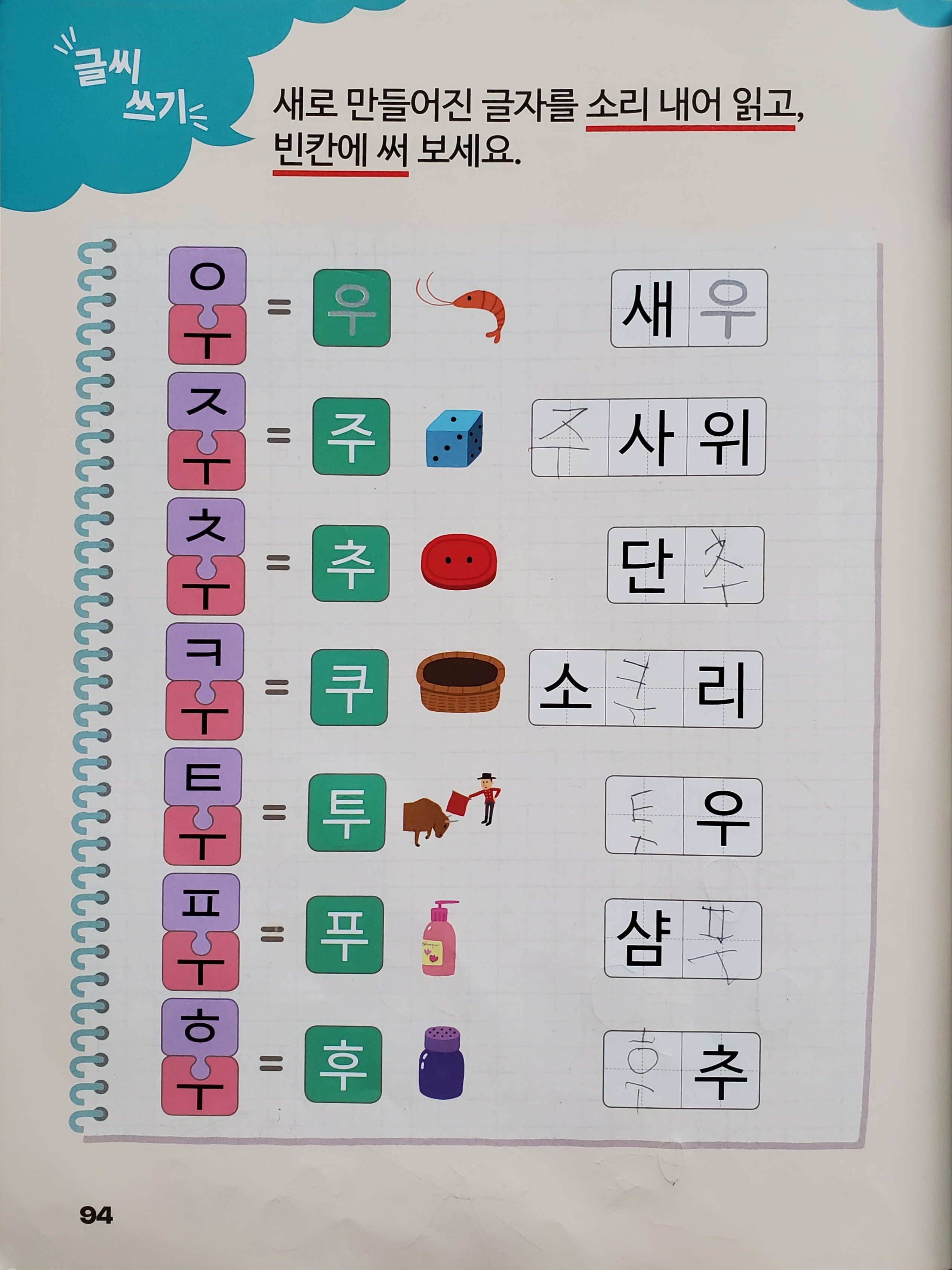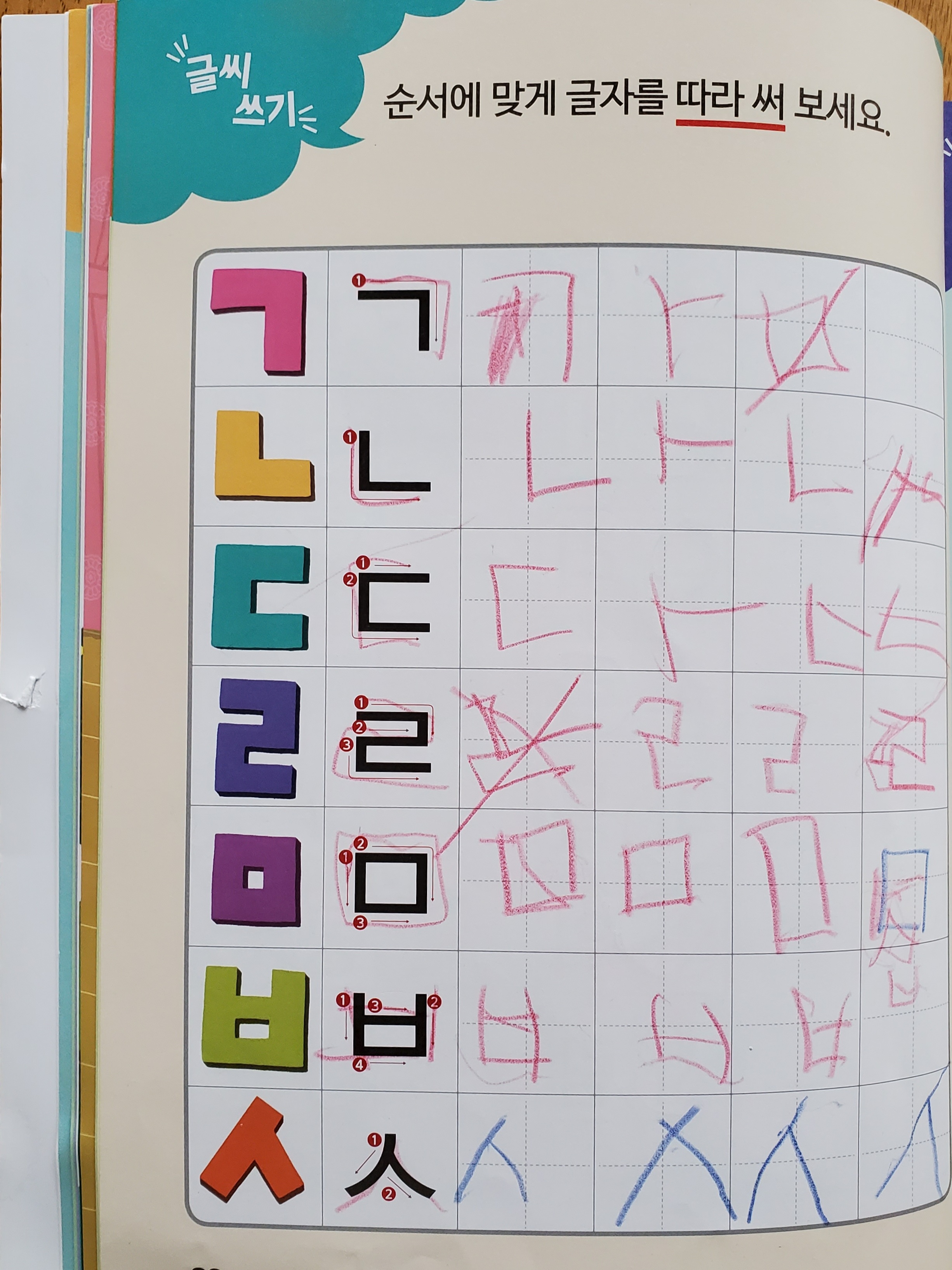 그리고 한깨비 안에 들어있는 한글 모음과 자음을 보여주는 표를 보더니 글을 읽기 시작한다. 와~우! 모르는게 있으면 다시 그 표를 보며 소리내 읽어보고 계속해서 들여다보더니 이제 겨우 1권 끝냈는데 마침 2개 있는거 외엔 거의 모든 한글을 읽어버린다. 정말 도깨비 방망이 같은 느낌이랄까?!